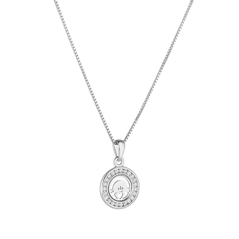 Irish Necklace | Sterling Silver Crystal Kids Claddagh Pendant