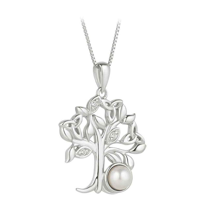 Irish Necklace | Sterling Silver Freshwater Pearl Celtic Tree of Life Pendant