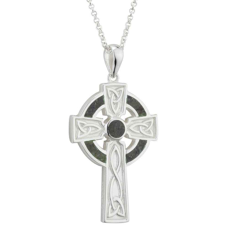 Irish Necklace - Sterling Silver Large Marble Cross Pendant