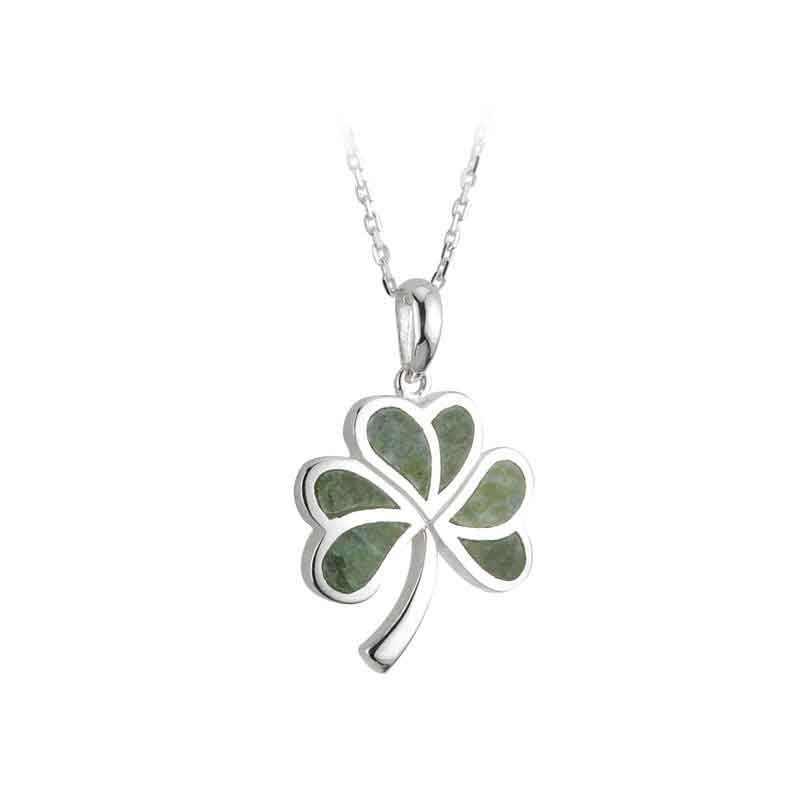 Irish Necklace - Sterling Silver Shamrock Connemara Marble Pendant