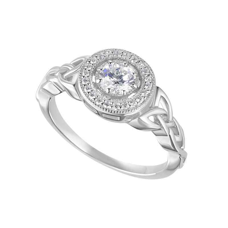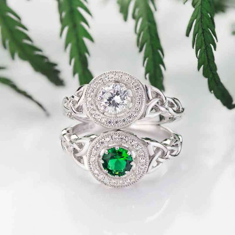 Irish Ring | Sterling Silver Green Crystal Cluster Halo Trinity Knot Ring