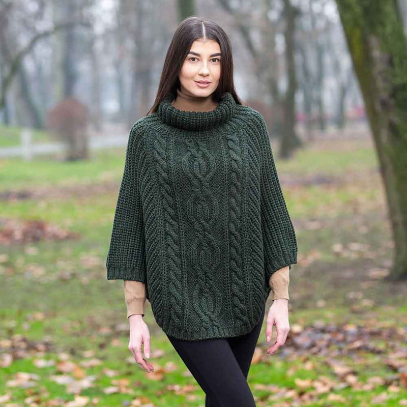 Irish Shawl | Merino Wool Aran Cable Stitch Ladies Poncho