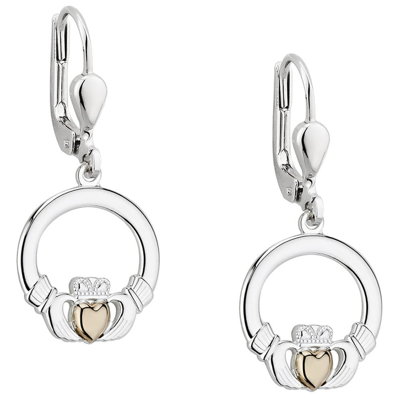 SALE | Irish Earrings | 10k Gold Heart Sterling Silver Claddagh Earrings