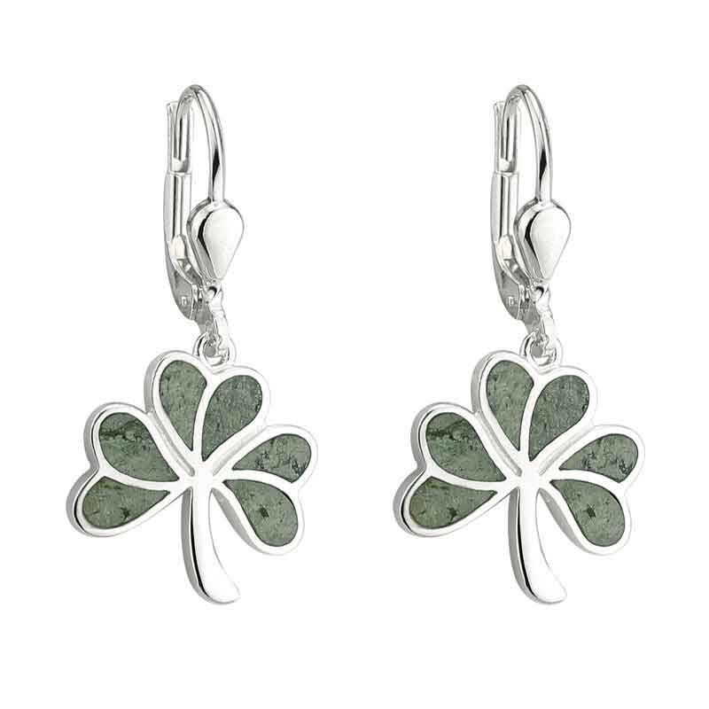 Shamrock Earrings - Sterling Silver Connemara Marble Shamrock Drop Earrings