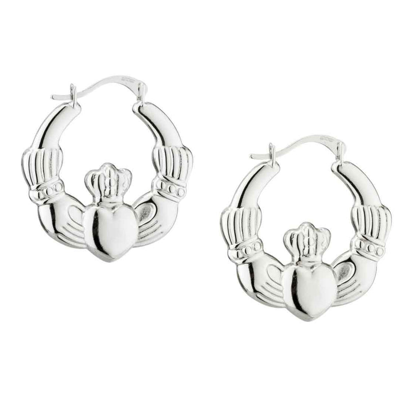 Silver earrings made in Ireland by Solvar Jewelry. Featuring the beloved Claddagh, symbolizing Love, Loyalty and Friendship. An icon of Celtic romance for generations.