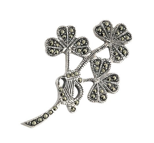 Sterling Silver Marcasite Shamrock Spray Brooch