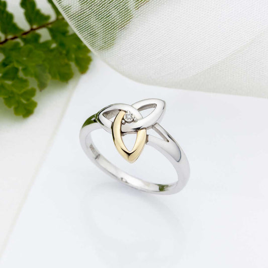 Celtic Ring - Silver, 10k Gold & Diamond Trinity Knot Ring