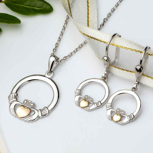 Irish Necklace | 10k Gold Small Circle Claddagh Pendant