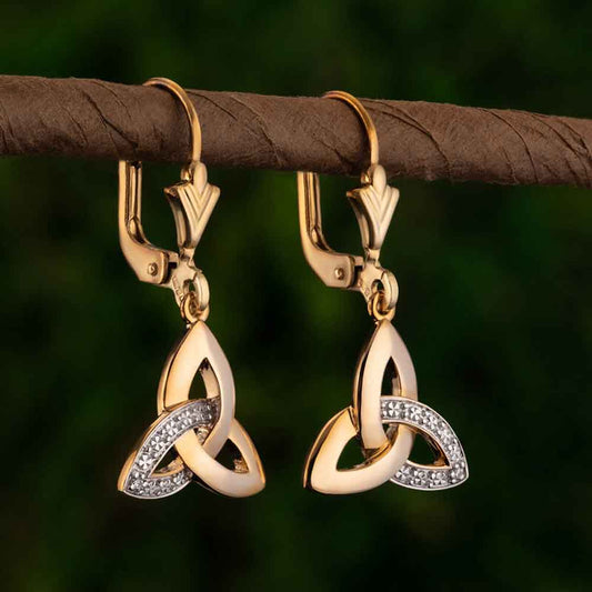 Irish Earrings | 14k Yellow Gold Stud Trinity Knot Diamond Earrings