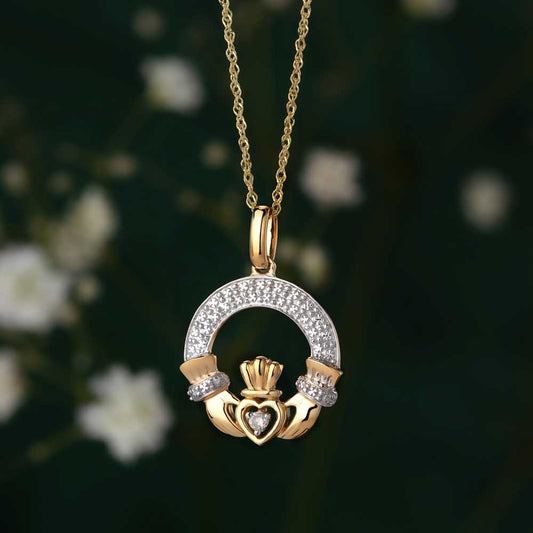 Claddagh Necklace - 14k Gold with Diamonds Claddagh Pendant