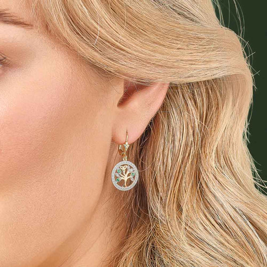 Irish Earrings - 14k Gold with Diamonds and Emerald Tree of Life Earrings