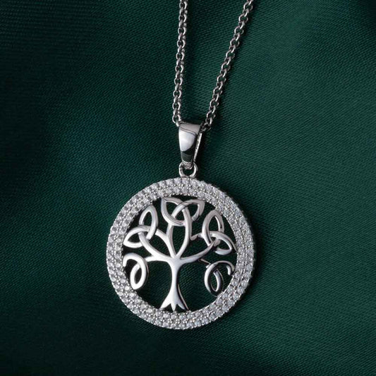 Celtic Pendant - Tree of Life Sterling Silver Crystal Irish Necklace