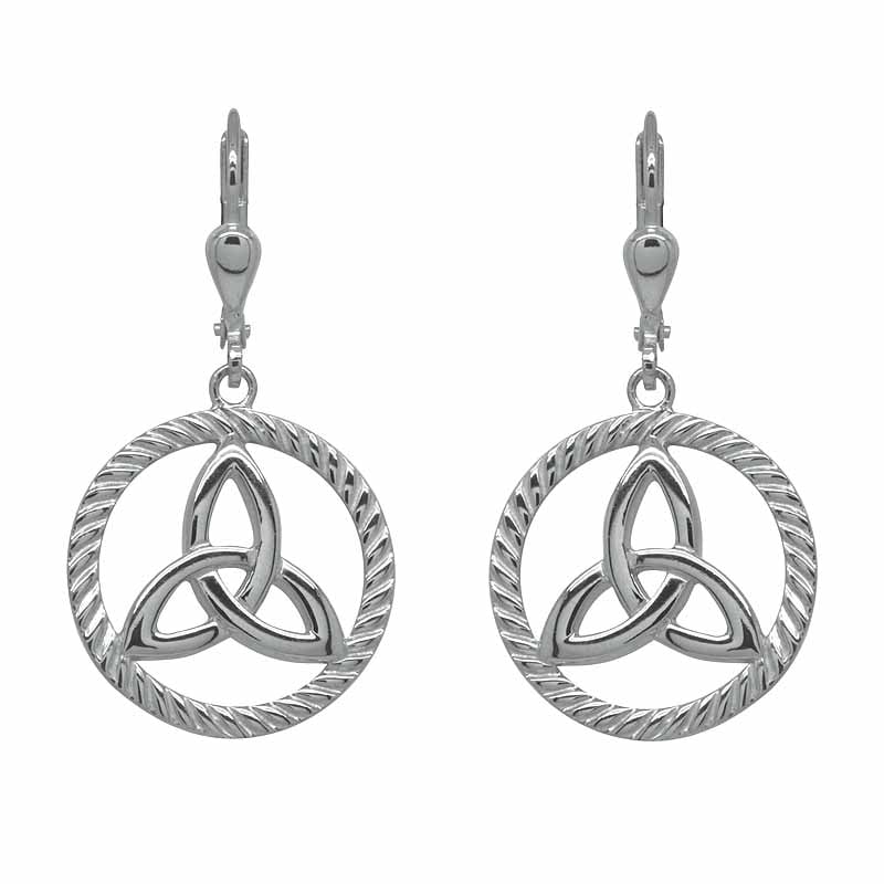 Irish Earrings | Rhodium Plated Sterling Silver Round Trinity Knot Earrings