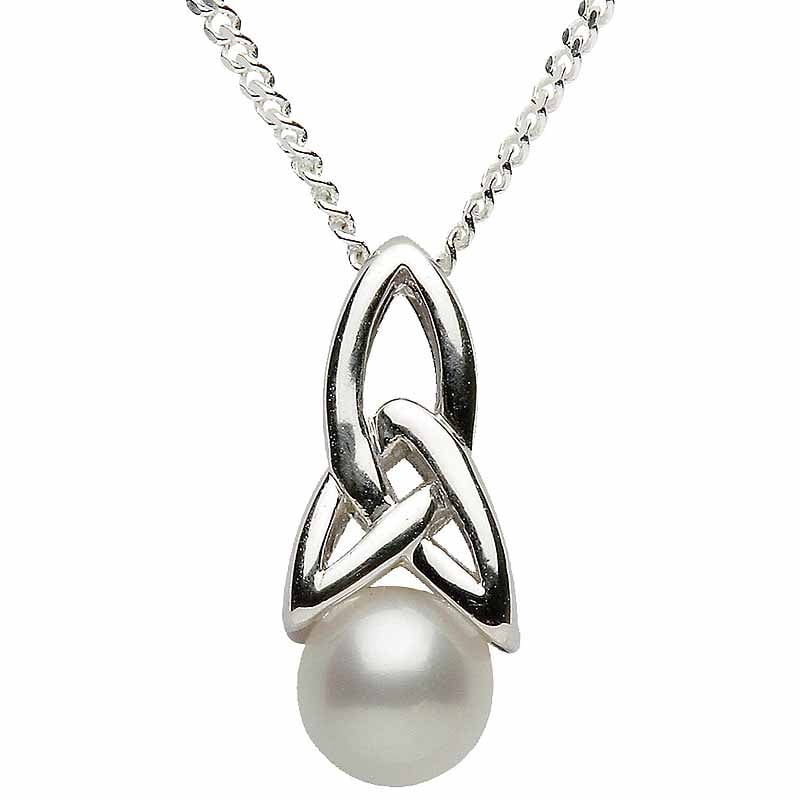 Trinity Knot Pendant - Sterling Silver Celtic Trinity Knot Pearl Pendant with Chain