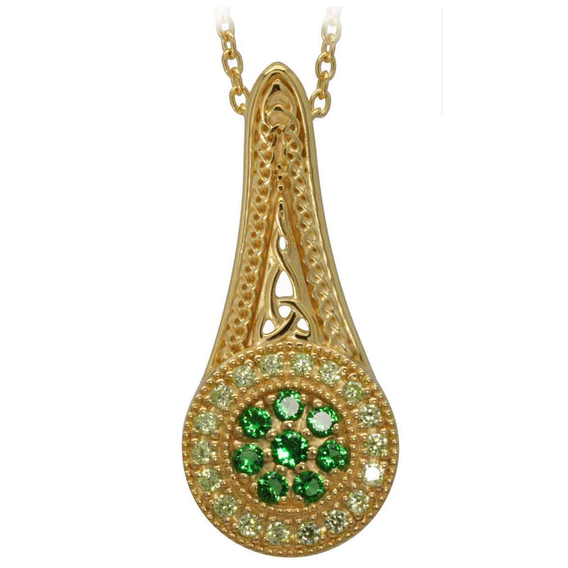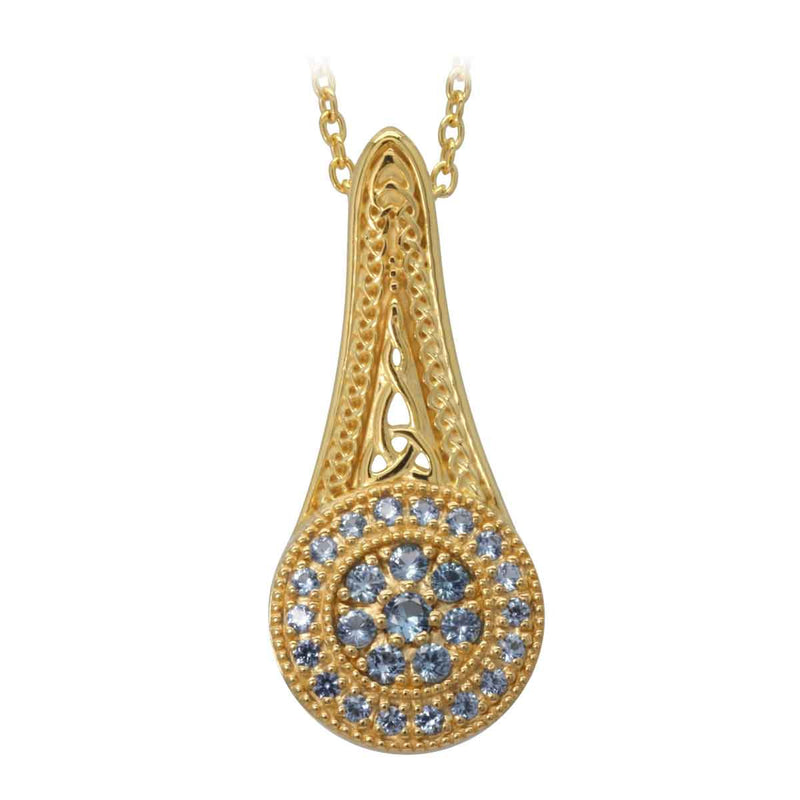 Irish Necklace | Gold Plated Sterling Silver with Crystal Celtic Trinity Knot Circle Pendant with Chain