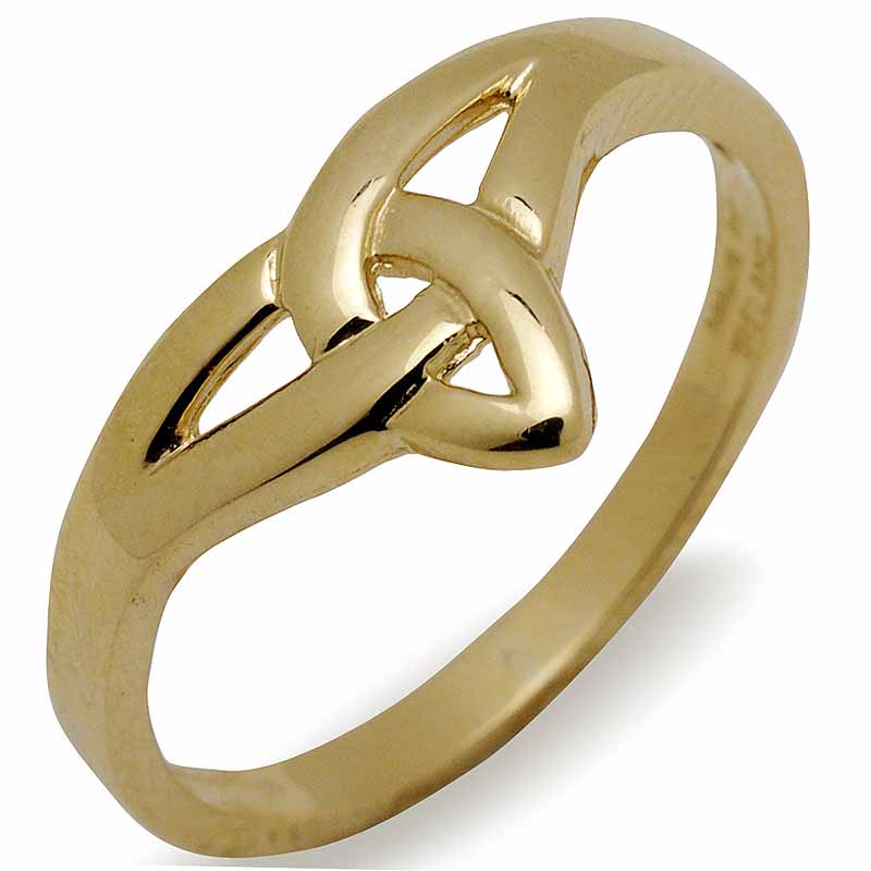 This ladies Irish Ring features an elegant, open Trinity Knot on a 10k yellow gold band. This Celtic design has no beginning and no end, making it an ideal symbol of eternal love and friendship.
