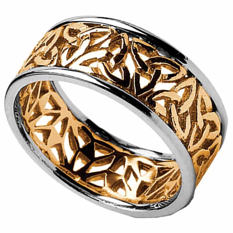 Trinity Knot Ring - Men's Yellow Gold with White Gold Trim Trinity Filigree Irish Wedding Ring