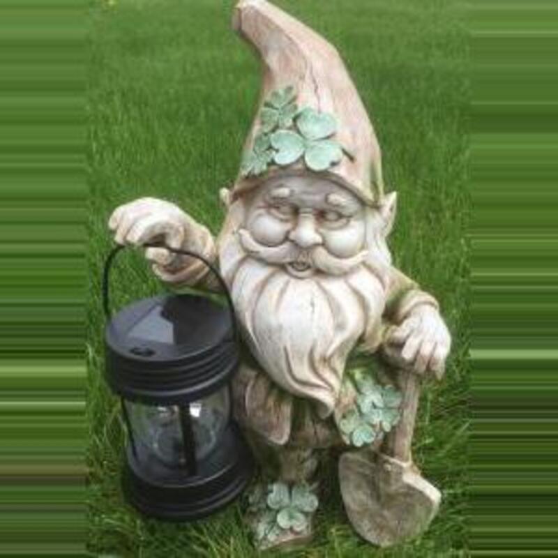 By day this shamrock leprechaun is a charming garden accent and by night he will light the path to your door with his solar powered lantern. Resin. 9.5" x 8" x 20.5". Shipped separately - please allow 7-10 business days for delivery.