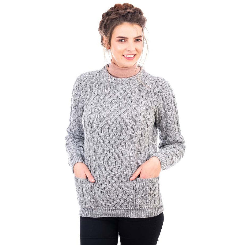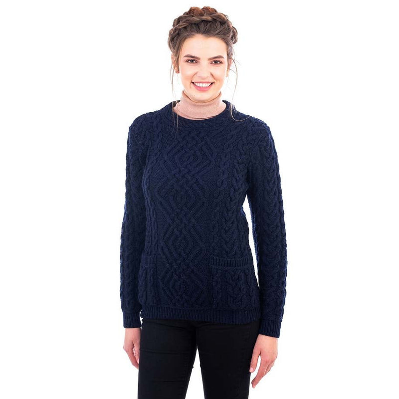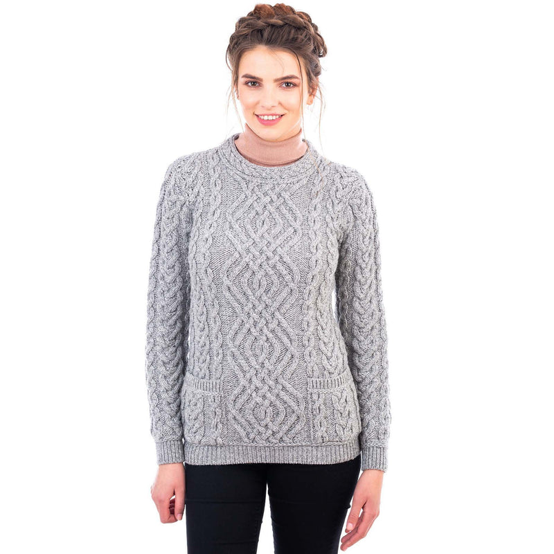Irish Sweater | Aran Cable Knit Merino Wool Crew Ladies Sweater