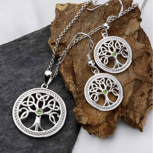 Irish Earrings | Sterling Silver Green Crystal Celtic Tree of Life Earrings