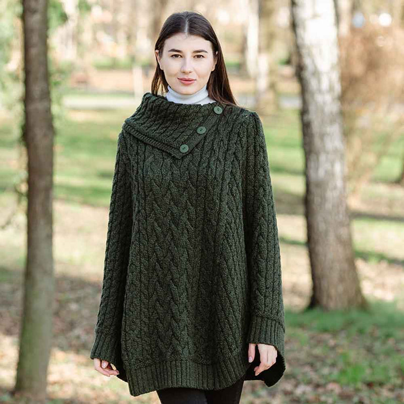 Irish Shawl | Ladies Cowl Neck Button Poncho