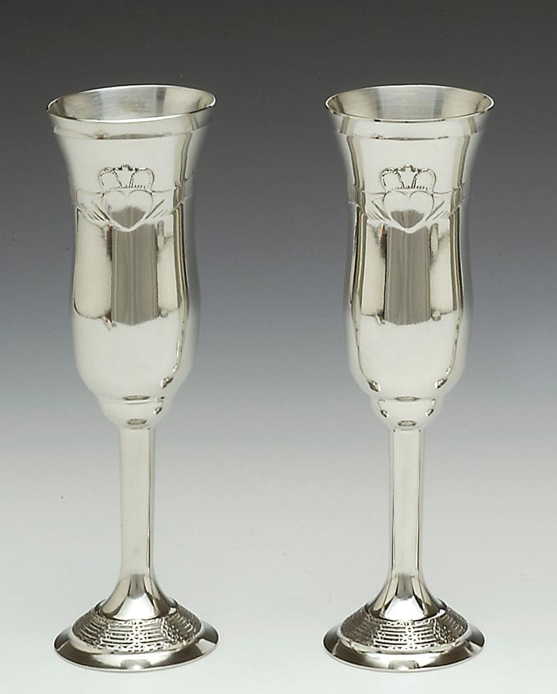 Pewter Claddagh Wedding flutes by Mullingar Pewter, Ireland