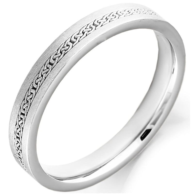 Irish Wedding Ring – Mens Celtic Knot Gold Irish Wedding Band. A subtle Celtic Knot pattern, symbolizing no beginning and no end, surrounds the center of this elegant Irish wedding ring.