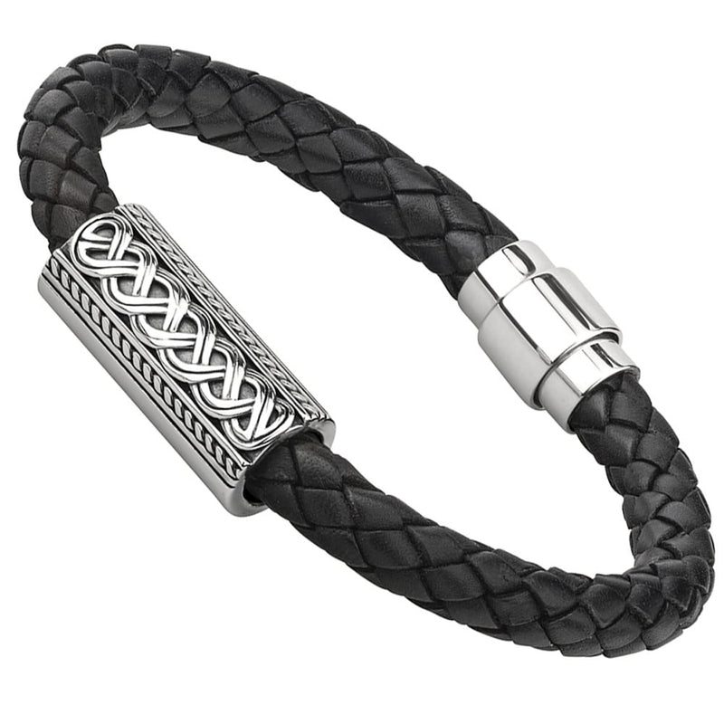 Inspired by ancient Celtic Knotwork and designed with Irish heritage in mind, this leather bracelet combines Sterling Silver and Leather in a dashing Irish Bracelet. Comfortable to wear, it is a wonderful piece of jewelry for the man who loves his Irish ancestry.