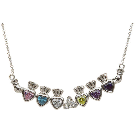 Claddagh Necklace | Mother's Family Birthstone Sterling Silver Pendant