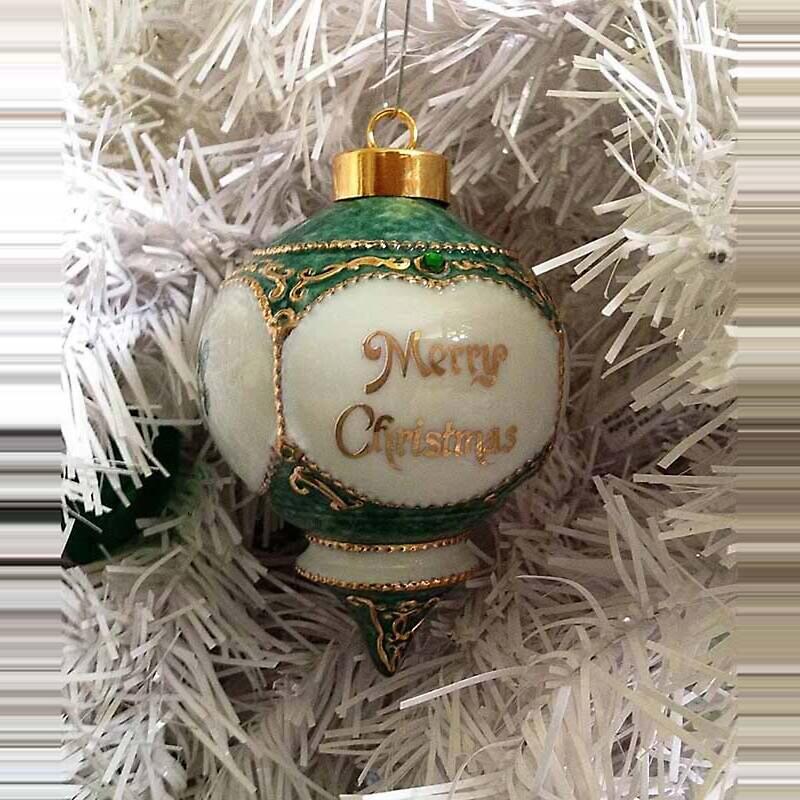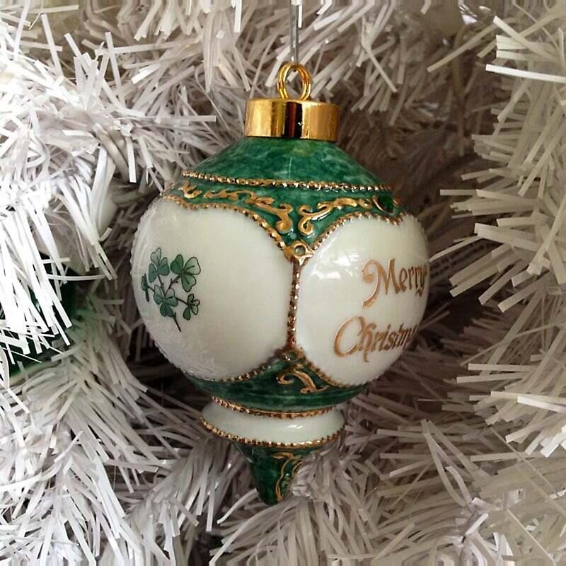 An Irish Christmas Ornament designed with a delightful Victorian look, and highlighted in gold and green. Porcelain 4". Shipped separately - please allow 2-3 weeks for delivery