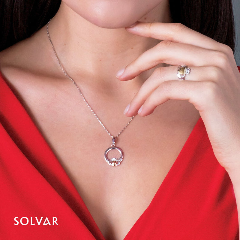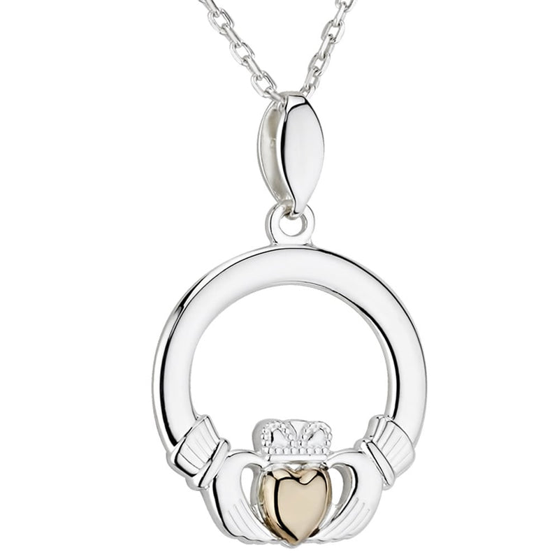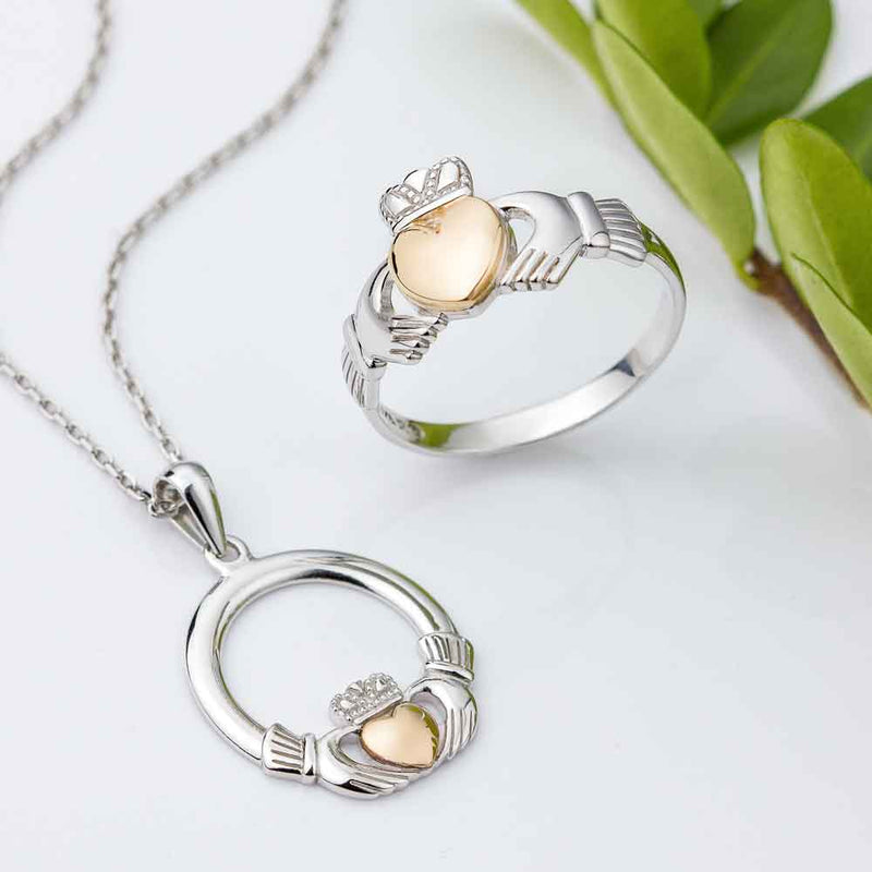 Irish Necklace | 10k Gold Heart Sterling Silver Claddagh Pendant