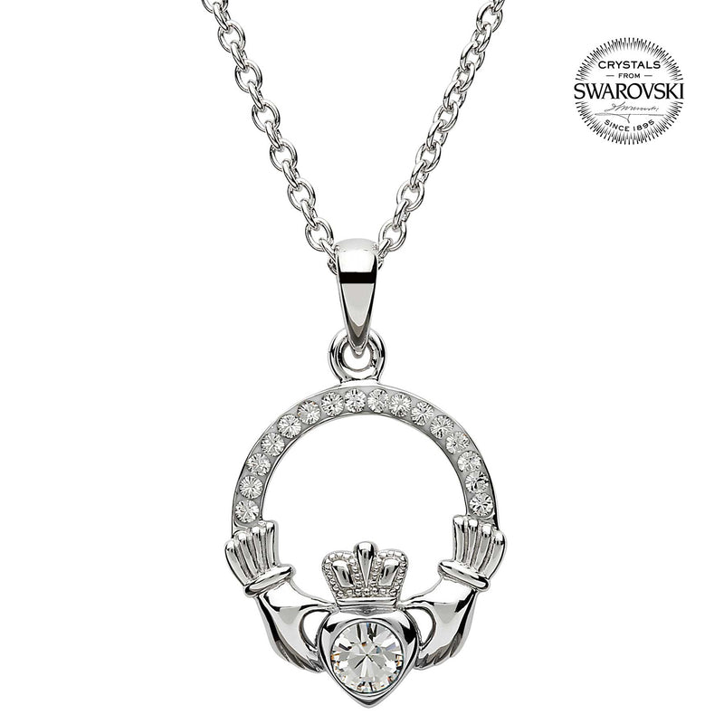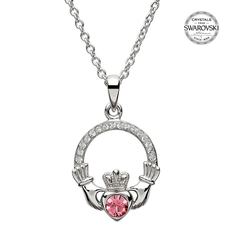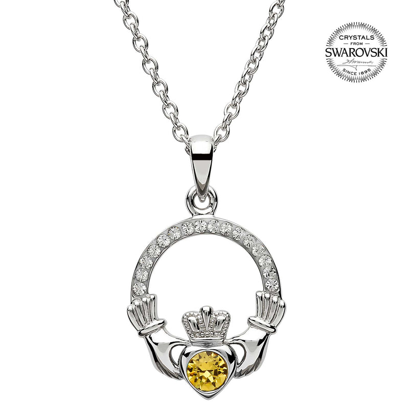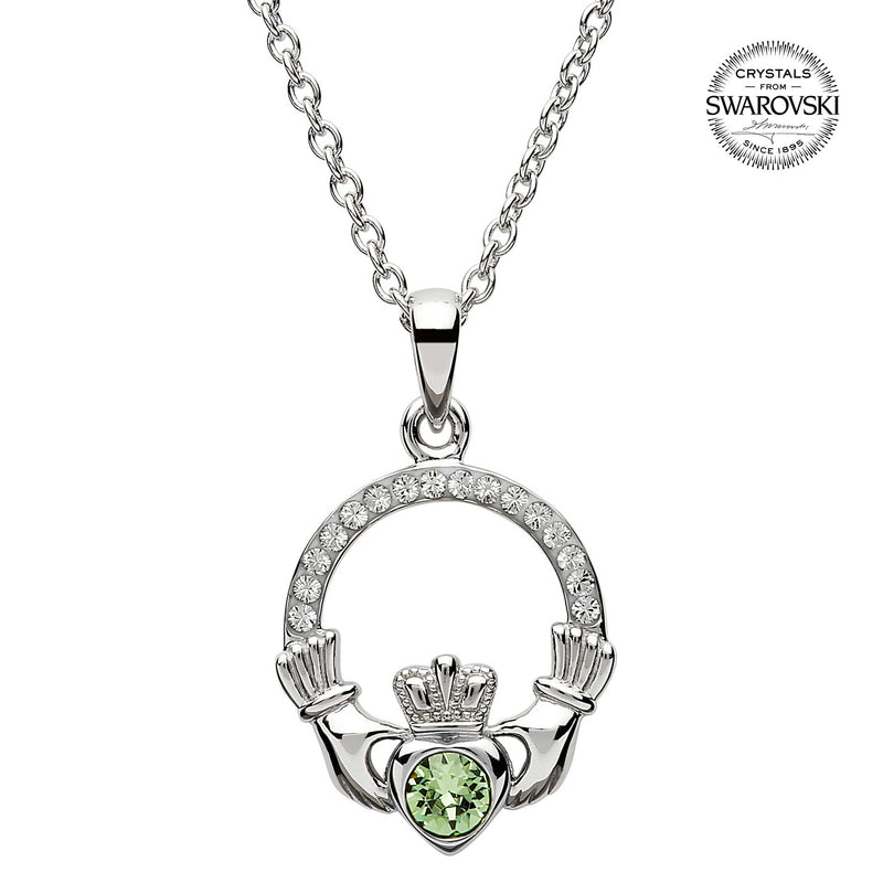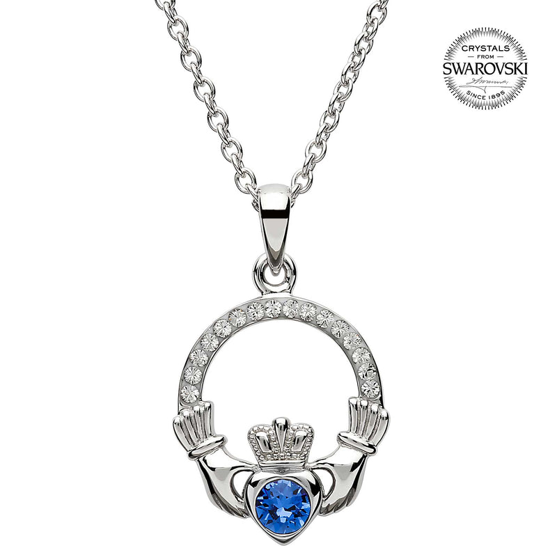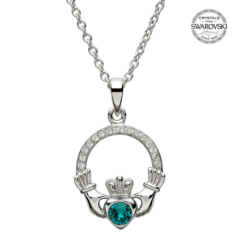 Irish Necklace | Sterling Silver Claddagh Swarovski Crystal Birthstone Pendant