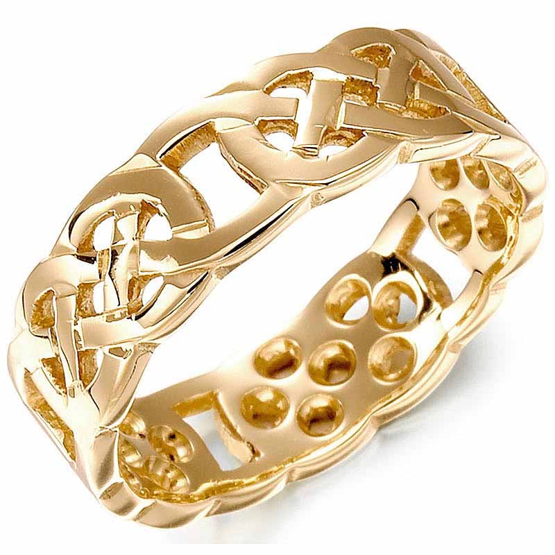 Ladies Irish Wedding Ring featuring a traditional Celtic Knot pattern. The Celtic Knot is a favorite wedding ring of many couples as the linking of the knots is symbolic of the joining of two people in marriage. A perfect Irish wedding ring to celebrate your special occasion and heritage.